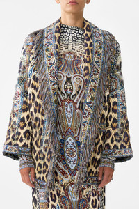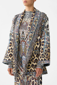The Istanbul Animalia Quilted Roll Collar Coat is a handcrafted silk silhouette designed by our in house artisans. Reimagined in an exclusive limited edition print, this coat is crafted with an unstructured fit and features a sumptuous, rolled collar. Its hexagonal, quilted design is detailed with a subtly contrasted CAMILLA logo on the back and it's finished with a quilted belt that can be tied at the waist for versatile shaping. - 100% Silk - Unstructured Fit With Soft Roll Collar - Hexagon Quilted Design With Large "C" Logo On Back - Quilted Belt Tie - Silk Satin Fabric SKU 00037418-ISTAANIM-S Size and Fit Our model is 5'10 (178cm) tall and wears a size S (AU 10). Bust: 40in (101.6cm) Waist: 26.5in (67cm) Hips: 38in (96.5cm) Designed as a relaxed fit. Take your normal size, or select one size smaller for a neater fit. Fabric and Care 100% SILK Silk satin embodies a sumptuously smooth finish that offers a rich buttery touch to the skin. As a result of the satin weaving technique, it masterfully creates a fuller bounce to the body and drape details.