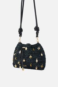 RAFFIA POUCH BAG WITH CHARMS