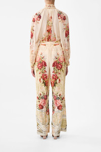 Designed in Australia, the Meet Me At The Majestic Raglan Button Up Shirt echoes the charm of Majestic Cafe. Romantic tones and delicate florals blend with delicate desires, inspired by its rich artistic spirit. Lovingly handcrafted, this luxury CAMILLA silk blouse features a high neckline, softly gathered and relaxed fitting body falls to a curved hemline. The blouson sleeves echo the billowy silhouette that gathers into a wide button up cuffs for a soft tailoring. - Crystal Embellishment - Blouson Sleeves - Buttoned Cuffs - High Collar And Stand - Front Button Fastening - SKU 00035477-MEETMAJE-XS Size and Fit Designed as a relaxed fit—take your normal size, or select one size smaller for a neater fit. Fabric and Care 100% SILK With its subtly textured surface, silk crepe is our core fabrication made perfect for versatile wear. With its ability to hold alternative ways to wear, this decadent fabric drapes elegantly off the body whilst keeping you cool with its breathable nature.