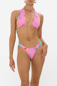 Designed in Australia, The A Painted Village Reversible Halter Bikini greets you into a cacophony of cheerful chaos, where handpainted embroidery patterns gracefully embellish a delicate blue canvas. Lovingly handcrafted, this halter top bikini is designed to perfection with reversible styling and soft ties for a customizable fit. Tailored for B-C cups, it offers cheeky coverage and is crafted from regenerative nylon for a touch of eco-conscious elegance. - Fits B-C Cup - Reversible Style - Halter Top With Soft Ties - Cheeky Coverage - ECONYL® SKU 00034362-PAINTVIL-XS Size and Fit Our model wears a CAMILLA S and is 5'10 (178cm) tall. Her standard dress size is an AU 10. She has a 32in (83cm) bust, 35in (89.5cm) hips and a 25in (66cm) waist. Camilla S = AU10 / UK10 / US6 Fabric and Care MAIN: 80% RECYCLED NYLON, 20% ELASTANE