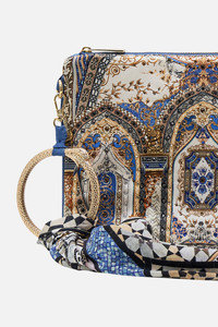 Designed in Australia, The Make Me Your Mosaic Ring Scarf Clutch evokes the breathtaking tessellations that adorn the sacred walls of Egypt's architectural masterpieces Lovingly handcrafted this bespoke evening clutch bag showcases a signature CAMILLA print upon a sumptuous rectangular silhouette. The statement custom ring hardware is adorned with a detachable silk scarf and the zip top enclosure ensures sleek storage for all your treasures. - Internal Zip Pocket - Hardware Ring - Detachable Scarf - Contrast Piped Edge - 26Cm X 18.5Cm SKU 00032409-MMYMOSAC-O/S Size and Fit Our model wears a CAMILLA O/S and is 5'10 (178cm) tall. Her standard dress size is an AU 10. She has a 32in (83cm) bust, 35in (89.5cm) hips and a 25in (66cm) waist. Designed as a one size style Fabric and Care 100% SILK Silk satin embodies a sumptuously smooth finish that offers a rich buttery touch to the skin. As a result of the satin weaving technique, it masterfully creates a fuller bounce to the body and drape details.