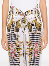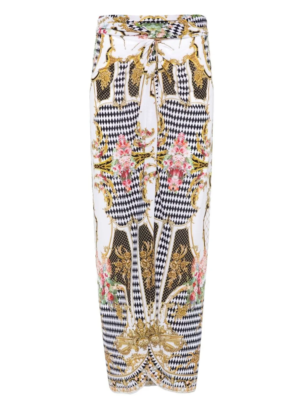 Rococo midi skirt Highlights - Black - Twist detailing - Draped detailing - Front slit - Mid-length Imported Composition Recycled Nylon 34%, Nylon 34%, Elastane 32% SIZE & FIT Model measurements Height 5 ft 10 in(1.79 m) Bust/Chest 33.07 in(84 cm) Hips 35.82 in(91 cm) Waist 24.01 in(61 cm) FittingInformation This midi-length skirt is intended to be worn just below the waist Made from a lightweight stretch fabric, this piece offers elasticity and flexibility when worn
