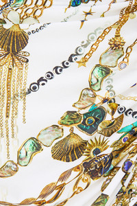 The Chain Gang Ruched Short Sarong With Ring Front Trim is a handcrafted silhouette designed by our in house artisans. Reimagined in an exclusive limited edition print, this luxury sarong is cut in a short length and is decorated with intricate trim details. It features a drawstring tie for effortless versatility, style over swim for resort wear luxury. - Short Length - Trim Detail - Drawstring Tie Detail SKU 00039414-CHAINGNG-XS Size and Fit Our model is 5'10 (178cm) tall and wears a size S (AU 10). Bust: 40in (101.6cm) Waist: 26.5in (67cm) Hips: 38in (96.5cm) Fabric and Care MAIN: 34% NYLON, 34% RECYCLED NYLON, 32% ELASTANE