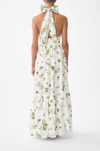 Designed in Australia, the Botanical Utopia Ruffle Hem Halter Dress floats on a dreamscape of baby blue and purple. Botanical motifs cascade across embroidered textiles, capturing the poetry of wildflower fields. Lovingly handcrafted, this CAMILLA halter dress is an ode to elegance. The full skirt flows effortlessly, while the adjustable halter tie and low back add a touch of allure. Dazzling crystal embellishments and a playful ruffle hem bring a hint of CAMILLA signature charm. - Full Skirt - Adjustable Halter Tie - Low Back - Crystal Embellishment - Ruffle Hem SKU 00037875-BOTAUTOP-XXS Fabric and Care 100% ORGANIC COTTON Organic cotton poplin is sumptuously smooth with a crisp, refined weave. This lightweight silken fabric drapes beautifully and is ideal for sleek contours and tailored, defined styles.