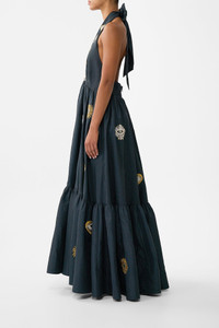The Amulets And Alchemy Ruffle Hem Halter Dress is a handcrafted silhouette designed by our in house artisans. Reimagined in an exclusive limited edition print, this luxury maxi dress features a v neckline that meets and elasticated back for effortless wear. It is decorated with intricate embroidery and is finished with a back zip fastening for versatility. - V Neckline - Long Length - Fit And Flare - Elasticated Back - Back Zip Fastening - Embroidery Details SKU 00038948-AMULALCH-XS Size and Fit Our model is 5'10 (178cm) tall and wears a size S (AU 10). Bust: 40in (101.6cm) Waist: 26.5in (67cm) Hips: 38in (96.5cm) Fabric and Care 100% POLYESTER