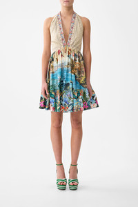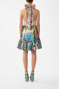 The Bodrum Botanicals Ruffle Hem Halter Short Dress is a handcrafted silhouette designed by our in house artisans. Reimagined in an exclusive limited edition print, our backless mini dress features adjustable halter neck ties and an elasticated back bodice as the full skirt is finished with a ruffled hemline. - 100% Organic Cotton - Adjustable Halter Tie - Backless - Full Skirt With Hem Frill - Elasticated Back Bodice - Centre Back Zipper - Crystal Embellishment SKU 00038879-BODRBOTA-XXS Size and Fit Our model is 5'10 (178cm) tall and wears a size S (AU 10). Bust: 40in (101.6cm) Waist: 26.5in (67cm) Hips: 38in (96.5cm) Designed and fitted true to size, take your normal size. Fabric and Care 100% ORGANIC COTTON Organic cotton poplin is sumptuously smooth with a crisp, refined weave. This lightweight silken fabric drapes beautifully and is ideal for sleek contours and tailored, defined styles.