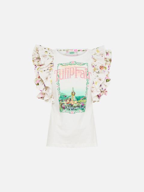 Designed in Australia, The Totally Ozmopolitan Ruffle Wrap Top unveils a fantastical realm where storytelling defies gravity, weaving a symphony of bubbles, butterflies, and tarot cards against a perfectly pink sky. Every detail pays homage to enchanting femininity and the gentle charm of a benevolent witch. Lovingly handcrafted, this ruffle wrap top features a fitted bodice and a chic cropped length. The voluminous ruffle detail and wrap-front design create a playful yet elegant silhouette, enhanced by exquisite crystal embellishments and delicate embroidery. - Fitted Bodice - Cropped Length - Voluminous Ruffle Detail - Wrap Front Design - Crystal Embellishment - Embroidery SKU 00036393-GLINDALN-XXS Size and Fit Our model wears a CAMILLA S and is 5'10 (178cm) tall. Her standard dress size is an AU 10. She has a 32in (83cm) bust, 35in (89.5cm) hips and a 25in (66cm) waist. Camilla S = AU10 / UK10 / US6 Designed as a fitted silhouette, take your normal size. Fabric and Care 100% COTTON Organic cotton poplin is sumptuously smooth with a crisp, refined weave. This lightweight silken fabric drapes beautifully and is ideal for sleek contours and tailored, defined styles.