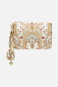 The Ottoman Dynasty Scarf Clutch is a handcrafted silk silhouette designed by our in house artisans. Reimagined in an exclusive limited edition print, our scarf clutch features a detachable printed scarf wristlet, internal pocket and intricately applied crystal embellishment. Finished with a zip top front and bespoke charm, utility and signature detail blend into one. - 100% Silk - Camilla Printed - Detachable Scarf Wristlet - Crystals - Zip Top Opening - Custom Design Charm - Internal Pocket - 26cm X 18.5cm SKU 00037569-OTTODYNA-O/S Size and Fit Our model wears a CAMILLA O/S and is 5'10 (178cm) tall. Her standard dress size is an AU 10. She has a 32in (83cm) bust, 35in (89.5cm) hips and a 25in (66cm) waist. Fabric and Care MAIN: 100% SILK Silk satin embodies a sumptuously smooth finish that offers a rich buttery touch to the skin. As a result of the satin weaving technique, it masterfully creates a fuller bounce to the body and drape details.