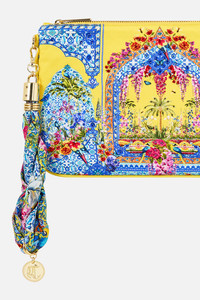 The Sultanahmet Summer Scarf Clutch is a handcrafted silk silhouette designed by our in house artisans. Reimagined in an exclusive limited edition print, our scarf clutch features a detachable printed scarf wristlet, internal pocket and intricately applied crystal embellishment. Finished with a zip top front and bespoke charm, utility and signature detail blend into one. - 100% Silk - Camilla Printed - Detachable Scarf Wristlet - Crystals - Zip Top Opening - Custom Design Charm - Internal Pocket - 107cm X 107cm SKU 00039219-SULTSUMM-O/S Size and Fit Our model wears a CAMILLA O/S and is 5'10 (178cm) tall. Her standard dress size is an AU 10. She has a 32in (83cm) bust, 35in (89.5cm) hips and a 25in (66cm) waist. Fabric and Care MAIN: 100% SILK