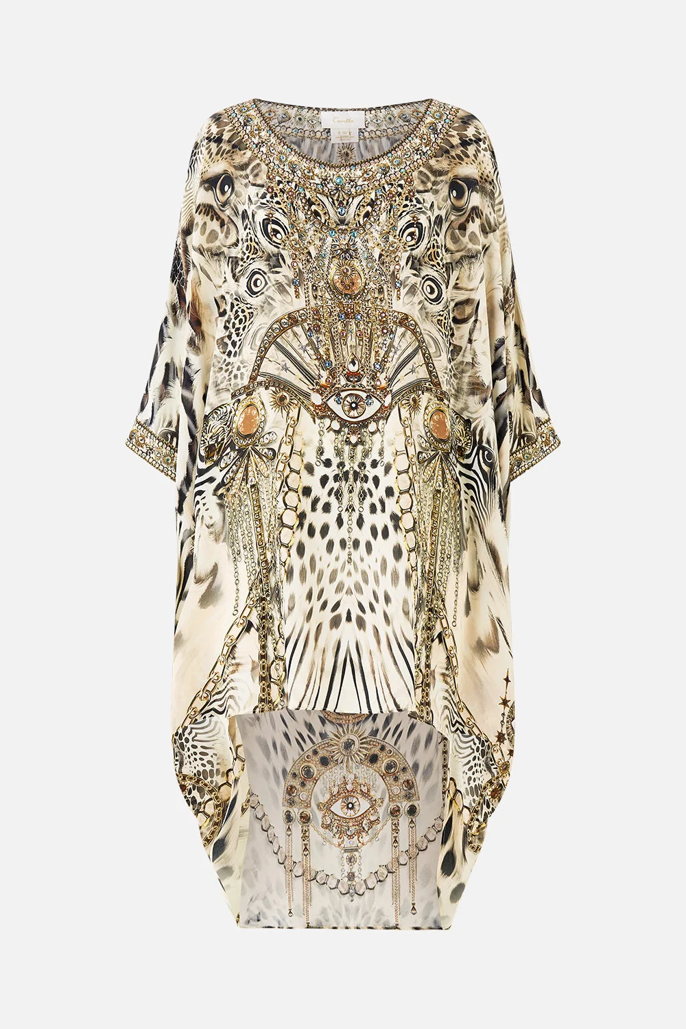 The Lady Lionheart Scoop Back Hem Dress is a handcrafted silhouette designed by our in house artisans. Reimagined in an exclusive limited edition print, this dress is cut in a relaxed fit and features a round neckline and asymmetrical scooped back hemline. It' adorned with 3/4 length sleeves that dance below elbow length and its finished with intricately placed crystal embellishments for luminous detail. - 100% Silk - Crystal Embellishment - Round Neckline - Relaxed Fit - 3/4 Length Sleeves - Silk Fabric SKU 00038193-LADYLION-O/S Size and Fit Our model is 5'10 (178cm) tall and wears a size S (AU 10). Bust: 40in (101.6cm) Waist: 26.5in (67cm) Hips: 38in (96.5cm) Designed as a relaxed fit. Take your normal size, or select one size smaller for a neater fit. Fabric and Care 100% SILK With its subtly textured surface, silk crepe is our core fabrication made perfect for versatile wear. With its ability to hold alternative ways to wear, this decadent fabric drapes elegantly off the body whilst keeping you cool with its breathable nature.
