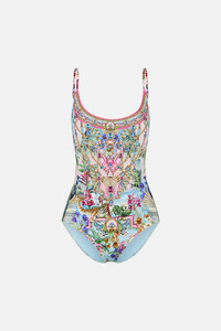 Designed in Australia, the Spirit Of Santa Maria Scoop Neck One Piece dances in pastel hues and vibrant painterly graphics, inspired by the electric beauty of Igreja Matriz De Santa Maria and its radiant frescoes. Lovingly handcrafted, this luxury one piece swimsuit features a fitted silhouette throughout the body that falls from an feminine scoop neckline. The high cut elongates the leg line for an exceptionally sleek line. - To Fit B-C Cup - Removable Soft Cups - Adjustable Straps - Round Neck - Regular To Low Leg Line SKU 00035529-SPIRMARI-XS Size and Fit Designed and fitted true to size, take your normal size. Fabric and Care MAIN: 82% REGENERATED POLYAMIDE, 18% ELASTANE ECONYL® is regenerated nylon, crafted from waste materials that would otherwise end up polluting our Mother Earth. Its beauty lies in its ability to be recycled, remoulded and ultimately reused time and time again. An infinitely recyclable product that keeps our planet looking beautiful, it opens the door to a circular fashion sphere.