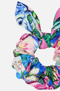Designed in Australia, the Spirit Of Santa Maria Scrunchie With Tie dances in pastel hues and vibrant painterly graphics, inspired by the electric beauty of Igreja Matriz De Santa Maria and its radiant frescoes. Lovingly handcrafted, this luxury silk scrunchie showcases an elasticated body with a lavish tie detail. Adorned in a bespoke printed silk and finished with crystal embellishments, this designer hair accessory exudes unparalleled opulence. - CAMILLA Printed Silk Twill - Tie Detail - Elasticated - WIDTH 6CM SKU 00035894-SPIRMARI-O/S Fabric and Care MAIN: 100% SILK Silk twill is renowned for its diagonally-patterned weave and fluid texture. Its high thread count ensures rich density and durability, while its beautiful sheen provides a luscious touch to the skin.