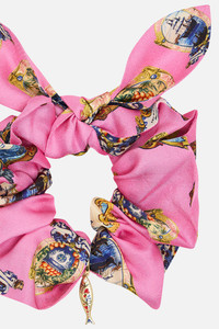 Designed in Australia, The Salty Splendour Scrunchie With Trinket vibrantly expresses the vibrant ocean energy that mirrors Lisbon's Saint Anthony Festival, alive with music, laughter, and summer's fresh flavours. Lovingly handcrafted, this luxury silk scrunchie showcases an elasticated body with a lavish tie detail. Adorned in a bespoke printed silk and finished with crystal embellishments, this designer hair accessory exudes unparalleled opulence. - CAMILLA Printed Silk Twill - Tie Detail - Trinket Hardware Detail - Elasticated SKU 00034191-SALTSPLD-O/S Size and Fit Our model wears a CAMILLA O/S and is 5'10 (178cm) tall. Her standard dress size is an AU 10. She has a 32in (83cm) bust, 35in (89.5cm) hips and a 25in (66cm) waist. Fabric and Care MAIN: 100% SILK Silk twill is renowned for its diagonally-patterned weave and fluid texture. Its high thread count ensures rich density and durability, while its beautiful sheen provides a luscious touch to the skin.