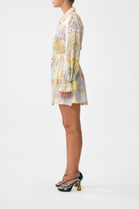 The East Of Istanbul Shift Shirt Dress is a handcrafted silk silhouette designed by our in house artisans. Reimagined in an exclusive limited edition print, our shirt dress is relaxed fitting with a beautiful button through front that can be cinched and shaped with a detachable waist tie. It's finished with full length, flowy, blouson sleeves and intricately placed crystal embellishments. - 100% Silk - Detachable Waist Tie - Blouson Sleeves - Button Through Front - Crystal Embellishment SKU 00036633-EASTISTA-XXS Size and Fit Our model is 5'10 (178cm) tall and wears a size S (AU 10). Bust: 40in (101.6cm) Waist: 26.5in (67cm) Hips: 38in (96.5cm) Designed as a relaxed fit. Take your normal size, or select one size smaller for a neater fit. Fabric and Care 100% SILK Silk satin embodies a sumptuously smooth finish that offers a rich buttery touch to the skin. As a result of the satin weaving technique, it masterfully creates a fuller bounce to the body and drape details.