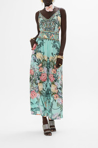 The Petal Promise Land Shirred Waist Pant delves into a garden of soft blue brimming with luscious blooms, butterflies and intricate lines of illustrative flora. This CAMILLA silk pant features a sumptuously wide adjustable waistband that flows into an elegant wide flared trouser that dances at the ankles for luxurious billow with every step. Explore more from the Wonderkind collection. - Lovingly Handcrafted - Designed in Australia - CAMILLA Ready-To-Wear - Crystal embellishment - Shirred waistband - High waisted - Wide flare trouser leg - Full length - Pockets - Can be worn as a matching set SKU 00029114-PEPROMAN-XS Size and Fit Our model wears a CAMILLA S and is 5'10 (178cm) tall. Her standard dress size is an AU 10. She has a 32in (83cm) bust, 35in (89.5cm) hips and a 25in (66cm) waist. Camilla S = AU10 / UK10 / US6 Designed as a relaxed fit, take your normal size or select one size smaller for a neater fit Fabric and Care 100% SILK With its subtly textured surface, silk crepe is our core fabrication made perfect for versatile wear. With its ability to hold alternative ways to wear, this decadent fabric drapes elegantly off the body whilst keeping you cool with its breathable nature.
