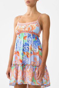 The Topkapi Pop Short Dress With Jersey Bodice is a handcrafted silhouette designed by our in house artisans. Reimagined in an exclusive limited edition print, this short dress with jersey bodice features a fitted bust and falls to a mini length hemline. Adorned with sparkling crystal embellishments and finished with CAMILLA branded hardware closure for a touch of decadent detail. - 100% Silk - Fitted Bust - Short Length - Camilla Branded Hardware Closure At Back - Crystal Embellishment SKU 00036950-TOPKIPOP-XXS Size and Fit Our model is 5'10 (178cm) tall and wears a size S (AU 10). Bust: 40in (101.6cm) Waist: 26.5in (67cm) Hips: 38in (96.5cm) Designed and fitted true to size, take your normal size. Fabric and Care 100% SILK Silk twill is renowned for its diagonally-patterned weave and fluid texture. Its high thread count ensures rich density and durability, while its beautiful sheen provides a luscious touch to the skin.
