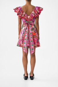 The Heirloom Empire Short Frill Neck Dress is a handcrafted cotton silhouette designed by our in house artisans. Reimagined in an exclusive limited edition print, this mini dress is relaxed fitting and features beautiful scalloped embroidery. Its delicate adjustable waist tie allows for personalised shaping, while the frilled neckline cascades into a soft V front. Intricately placed crystal embellishments illuminate the design, catching the light with every movement. - 100% Organic Cotton - Relaxed Fit - Short Length - Waist Tie Detail - Crystal Embellishment - Scallop Embroidery Detail SKU 00038142-HEIREMPI-XXS Size and Fit Our model is 5'10 (178cm) tall and wears a size S (AU 10). Bust: 40in (101.6cm) Waist: 26.5in (67cm) Hips: 38in (96.5cm) Fabric and Care 100% ORGANIC COTTON