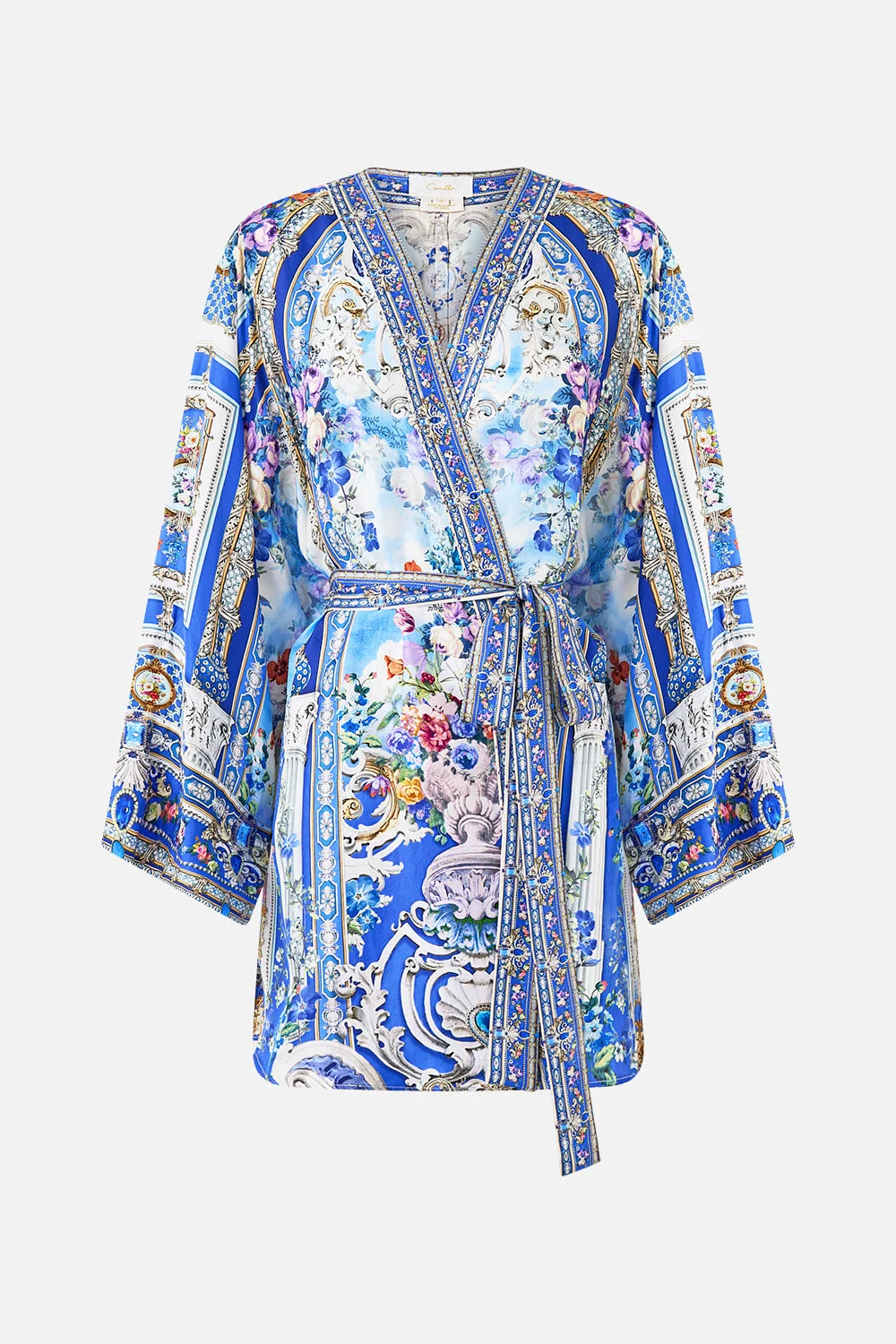 The Ottoman Opulence Short Kimono Wrap is a handcrafted silhouette designed by our in house artisans. Reimagined in an exclusive limited edition print, our short kimono wrap is cut in a relaxed fit with generous sleeves and side splits for ease of movement. Intentionally crafted for versatility and layering, it features a separate tie belt for effortless wear, while intricately placed crystal embellishments add luminous detail.. - 100% Silk - Relaxed Fit - Short Length - Wide Sleeve - Side Splits - Separate Tie Belt - Crystal Embellishment SKU 00038113-OTTOOPPU-XS Size and Fit Our model wears a CAMILLA S and is 5'10 (178cm) tall. Her standard dress size is an AU 10. She has a 32in (83cm) bust, 35in (89.5cm) hips and a 25in (66cm) waist. CAMILLA Size S = AU10 / UK10 / US6 Our More to Love Model wears a CAMILLA Size 3XL and is 5'9 (182cm) tall. Her standard dress size is a AU 20. She has a 42in (107cm) bust, 35.8in (91cm) waist and 46in (118cm) hips. CAMILLA Size 3XL = AU20 / UK20 / US16 Designed and fitted true to size, take your normal size. Fabric and Care 100% SILK Designed and fitted true to size, take your normal size.