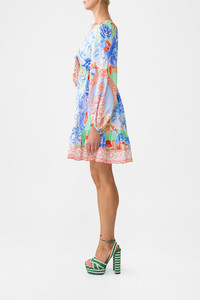 The Topkapi Pop Short Tie Front Blouson Dress is a handcrafted silhouette designed by our in house artisans. Reimagined in an exclusive limited edition print, this dress features an adjustable tie front that flows into a flared skirt, sitting just above the knee. Long blouson sleeves are finished with elasticated cuffs and it's adorned with crystal embellishment, bringing a luminous touch to every gesture. - 100% Silk - Crystal Embellishment - Tie Front - Flared Skirt - Elasticated Cuff SKU 00037116-TOPKIPOP-XXS Size and Fit Our model is 5'10 (178cm) tall and wears a size S (AU 10). Bust: 40in (101.6cm) Waist: 26.5in (67cm) Hips: 38in (96.5cm) Designed and fitted true to size, take your normal size. Fabric and Care 100% SILK Silk twill is renowned for its diagonally-patterned weave and fluid texture. Its high thread count ensures rich density and durability, while its beautiful sheen provides a luscious touch to the skin.