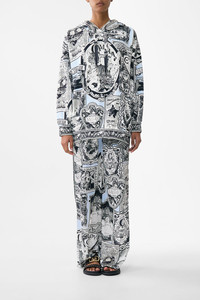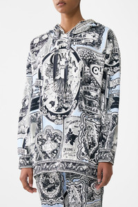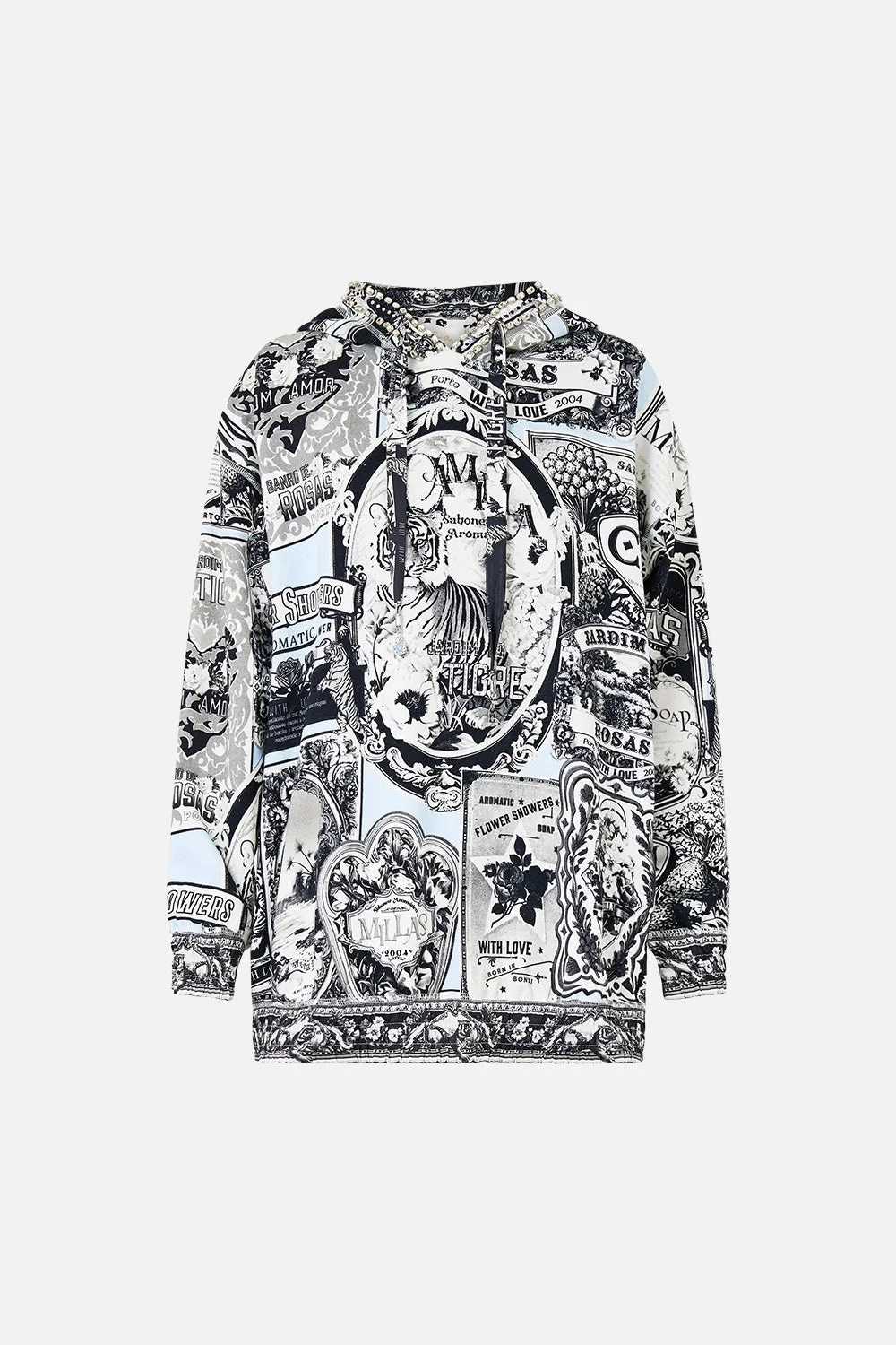 Designed in Australia, the Perfumed In Porto Silk Band Oversized Hoodie With Pockets unfolds colourful painterly prints inspired by handcrafted soap packaging—a sensory journey of bespoke artistry and vibrant design. Lovingly handcrafted, this luxury hoodie features a generous oversized silhouette with silk-lined detail. Pocket functionality and elastic-encased hem and cuffs showcase decadent wearability. - Oversized Hoodie Sweater - Silk Satin Lined Hoodie, Pockets And Drawstrings - Silk Satin Hem Band And Sleeve Cuff With Encased Elastic - Tassel Detail - Crystal Embellishment SKU 00035580-PERFPORT-XS Size and Fit Our model wears a CAMILLA S and is 5'10 (178cm) tall. Her standard dress size is an AU 10. She has a 32in (83cm) bust, 35in (89.5cm) hips and a 25in (66cm) waist. Camilla S = AU10 / UK10 / US6 Designed as an oversized silhouette—take your normal size, or select one size smaller for a neater fit. Fabric and Care 53% COTTON, 35% MODAL, 12% LYCRA