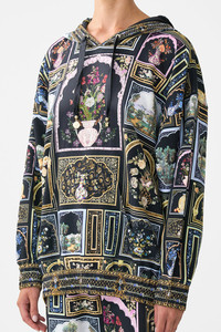 The Ottoman Elegance Silk Hem Band Boyfriend Hoodie is a handcrafted cotton silhouette designed by our in house artisans. Reimagined in an exclusive limited edition print, our oversized boyfriend hoodie is elevated with decadent silk details, a silk lined hood as well as contrast cuffs, hem and drawstrings. It's finished with a functional front pocket for effortless wear. - Oversized Fit - Silk Satin Cuffs And Hem Band - Silk Satin Lined Hoodie And Drawstrings - Front Pocket SKU 00037847-OTTOELEG-XS Size and Fit Our model is 5'10 (178cm) tall and wears a size S (AU 10). Bust: 40in (101.6cm) Waist: 26.5in (67cm) Hips: 38in (96.5cm) Fabric and Care 53% COTTON 35% MODAL 12% SPANDEX, CONST&LINNING- 100% SILK