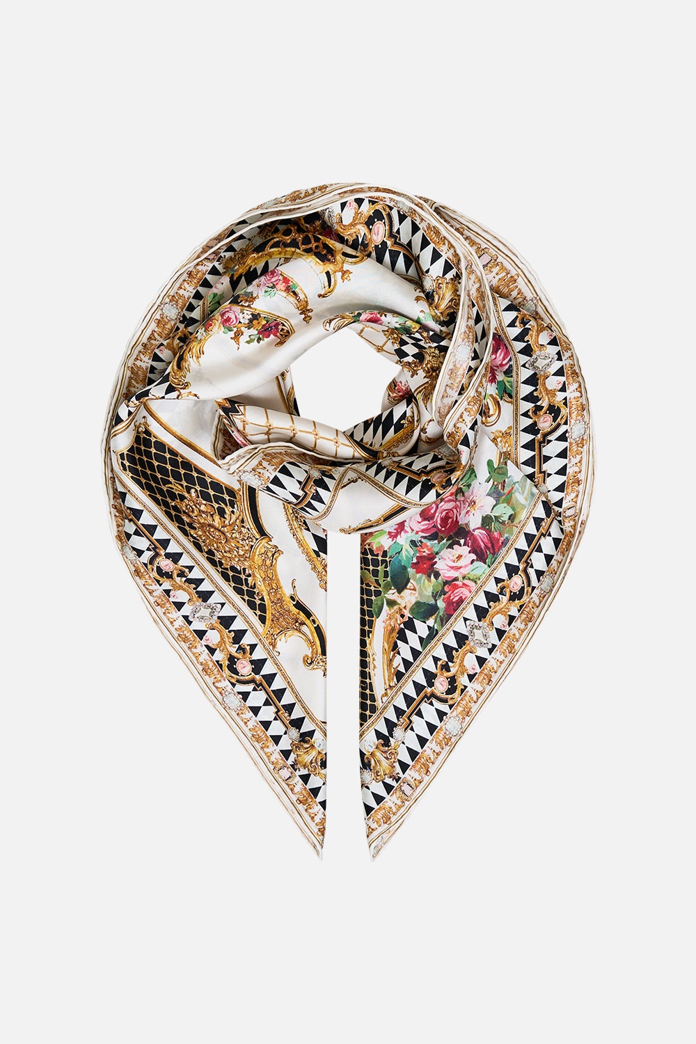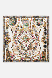 Designed in Australia, The Rococo Glow Silk Square Scarf features framed florals, ornate borders, and intricate ceiling and floor details that capture the regal elegance of the Palace of Queluz. Lovingly handcrafted, this luxury silk scarf features custom border details entwined with a bespoke CAMILLA print. The hand rolled hemline and generous expanse allows for chic multi wear versatility. - Hand Rolled Hems - Printed Silk - Contrast Border SKU 00034181-ROCOGLOW-O/S Fabric and Care MAIN: 100% SILK Silk twill is renowned for its diagonally-patterned weave and fluid texture. Its high thread count ensures rich density and durability, while its beautiful sheen provides a luscious touch to the skin.
