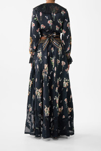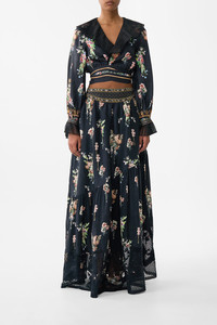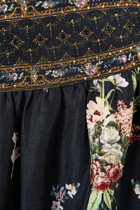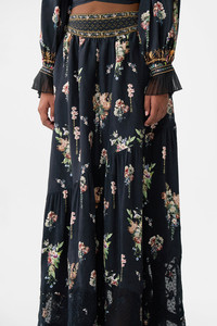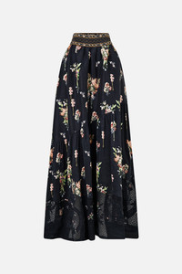 Designed in Australia, the Noble Endeavours Skirt With Shaped Seam embodies a white base fused with florals and golden arches, inspired by the arabesque opulence of the Palace of Queluz and its storied princess chambers. Lovingly handcrafted, this luxury maxi skirt features a softly gathered full skirt with a unique asymmetrical tiered seam that creates an exquisite flare that falls to a full-length hemline. With an encased elastic adjustable back and side seam pockets, it showcases decadent details. - Maxi Length - Shaped Front Waistband - Machine Embroidery And Lace Details At Hem - Crystal Embellishment - Crystal Embellishment SKU 00034805-NOBLENDE-XXS Size and Fit Our model wears a CAMILLA S and is 5'10 (178cm) tall. Her standard dress size is an AU 10. She has a 32in (83cm) bust, 35in (89.5cm) hips and a 25in (66cm) waist. Camilla S = AU10 / UK10 / US6 Designed and fitted true to size, take your normal size. Fabric and Care 80% LINEN, 20% SILK Grown organically, this lightweight natural fibre offers a timeless aesthetic that adds durability and longevity to any wardrobe. Its breathability keeps your skin cool, minimises moisture and ensures effortless comfort.