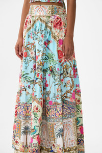 The Sultans And Queens Skirt With Shaped Seam is a handcrafted cotton silhouette designed by our in house artisans. Reimagined in an exclusive limited edition print, our maxi skirt features a curved asymmetrical detail that cascades to the hem. A shaped front waistband sculpts the waist while shirred back details ensure comfort without compromising form. - 100% Organic Cotton - Maxi Length - Curved Asymmetrical Seam - Shirred Back Waist - Shaped Front Waistband - Broderie Details SKU 00039010-SULTQUEN-XXS Size and Fit Our model is 5'10 (178cm) tall and wears a size S (AU 10). Bust: 40in (101.6cm) Waist: 26.5in (67cm) Hips: 38in (96.5cm) Designed and fitted true to size, take your normal size. Fabric and Care 100% ORGANIC COTTON Organic cotton poplin is sumptuously smooth with a crisp, refined weave. This lightweight silken fabric drapes beautifully and is ideal for sleek contours and tailored, defined styles.
