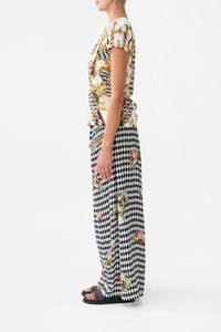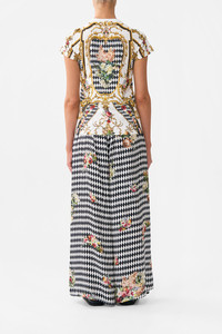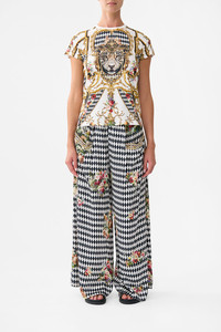 Designed in Australia, The Rococo Glow Slim Fit Round Neck T-Shirt - White/Gold features framed florals, ornate borders, and intricate ceiling and floor details that capture the regal elegance of the Palace of Queluz. Lovingly handcrafted, this luxurious graphic t shirt features a slim fit throughout the body that falls to a hip length hemline. The lush short sleeves echo the slim silhouette adding a feminine element to this elevated staple piece. - Slim Fit T-Shirt - Rib Neckline Bind - Crystal Embellishment - Gots Organic Cotton Main Fabric - Crystal Embellishment - Non-Sheer SKU 00033929-ROCOGLOW-XXS Size and Fit Designed as a slim fit, take your normal size Fabric and Care 100% COTTON