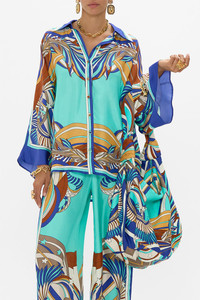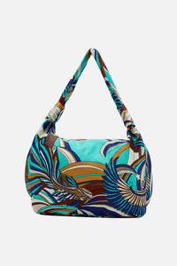 The Oasis Oracle Slouch Shoulder Bag delves into gentle geometric waves of blues and navy to create a vividly opulent sanctuary. This luxury shoulder bag features a relaxed slouchy silhouette with a wide shoulder strap tied in a loose knot detail at either end. The lavish zip enclosure ensures your treasures are stored securely while shimmering crystals add an opulent touch. Explore more from the House Of The Sun collection. - Lovingly Handcrafted - Designed in Australia - CAMILLA Accessories - Single shoulder strap - Crystal embellishment - Zip closure - Bespoke print - H at centre front 34cm, w 37cm, depth at base 23cm SKU 00030972-OSISORAC-O/S Size and Fit Our model wears a CAMILLA O/S and is 5'10 (178cm) tall. Her standard dress size is an AU 10. She has a 32in (83cm) bust, 35in (89.5cm) hips and a 25in (66cm) waist. - One size style. Fabric and Care MAIN: 52% LINEN, 48% COTTON