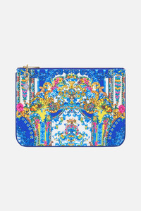 The Espana Nirvana Small Canvas Clutch is a handcrafted accessory designed by our in-house artisans. Imagined in an exclusive limited edition print, our signature canvas clutch features contrast piped edges, meticulously placed crystal embellishments, a zip top enclosure and a custom made parrot clip. Internal pocket and generous main compartment keep treasures stored in style. - Crystals - Removable Charm With Parrot Clip - Internal Pocket - Piped Edge SKU 00041032-ESPANIRV-O/S Size and Fit Our model wears a CAMILLA O/S and is 5'10 (178cm) tall. Her standard dress size is an AU 10. She has a 32in (83cm) bust, 35in (89.5cm) hips and a 25in (66cm) waist. Fabric and Care MAIN-100% POLYESTER ,LINING-100%VISCOSE