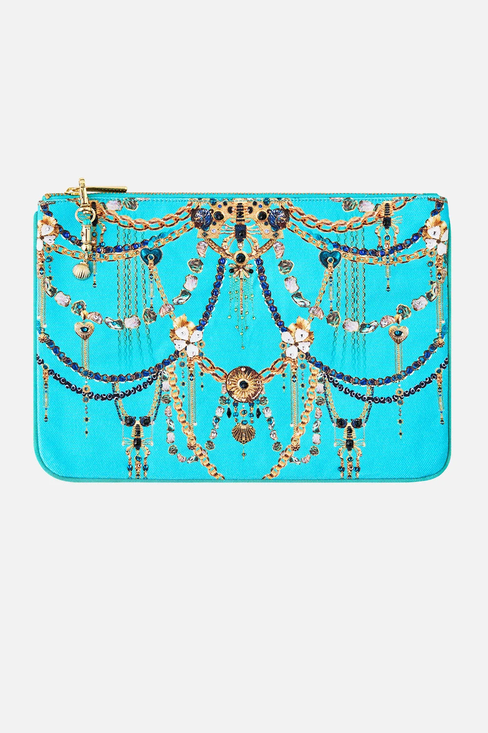 The Totems And Treasures Small Canvas Clutch is a handcrafted silhouette designed by our in house artisans. Reimagined in an exclusive limited edition print, meticulous artisan detail meets our signature canvas clutch as finishings incorporate contrast piped edges, meticulously placed crystal embellishments, zip top enclosure and a custom made parrot clip. Internal pocket and generous main compartment keep treasures stored in style. - Crystals - Removable Charm With Parrot Clip - Internal Pocket - Piped Edge - 26Cm X 18.5Cm SKU 00038203-TOTETRES-O/S Fabric and Care MAIN: 100% POLYESTER