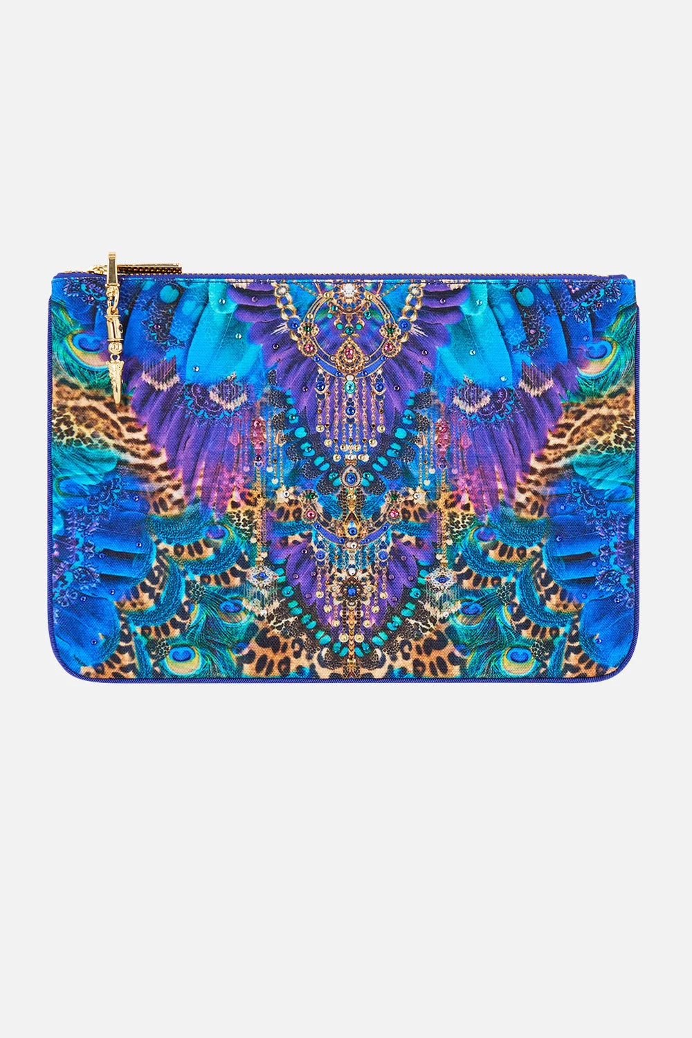 The Cosmic Zoology Small Canvas Clutch is a handcrafted silhouette designed by our in house artisans. Reimagined in an exclusive limited edition print, meticulous artisan detail meets our signature canvas clutch as finishings incorporate contrast piped edges, meticulously placed crystal embellishments, zip top enclosure and a custom made parrot clip. Internal pocket and generous main compartment keep treasures stored in style. - Crystals - Removable Charm With Parrot Clip - Internal Pocket - Contrast Piped Edge - 26cm X 18.5cm SKU 00037537-COSMZOOY-O/S Size and Fit Our model wears a CAMILLA O/S and is 5'10 (178cm) tall. Her standard dress size is an AU 10. She has a 32in (83cm) bust, 35in (89.5cm) hips and a 25in (66cm) waist. Fabric and Care MAIN: 100% POLYESTER