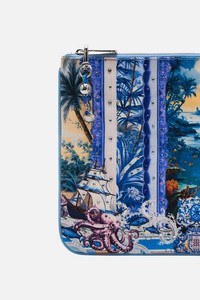 Designed in Australia, The Song Of Saint Anthony Small Canvas Clutch embarks on a fishing trip through Lisbon’s coastal charm, where hand-drawn creatures embody the spirit of the Saint Anthony Festival—oceanic and celebratory. Lovingly handcrafted, this CAMILLA clutch bag showcases a streamlined rectangle silhouette adorned with contrast piped edges, a zip top enclosure, and finished with a custom made parrot clip. The internal pocket and generous main compartment keep your treasures stored in style. - Crystals - Tassel With Parrot Clip - Internal Pocket - Contrast Piped Edge SKU 00034110-SONGANTH-O/S Size and Fit Fitted True to Size Fabric and Care MAIN: 100% POLYESTER