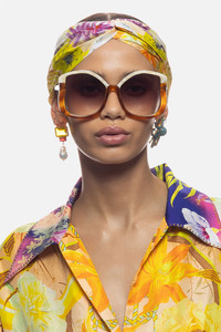 For all the hello, hellos! A yes to every adventure and a cascading array of calendar events calls for the Social Butterfly Sunglasses in Ivory and Vintage Tortoiseshell. These oversized butterfly shaped shades form a beautiful balance between bold and feminine, hand-crafted in luxurious plant-based acetate,feature a soft ombre lense, embellished with lavish gold inlay rims, signature CAMILLA icon trio and contrast tips, you'll be the toast of every soiree. - Ivory Tortoiseshell / Vintage Tortoiseshell Social Butterfly Sunglasses - CAMILLA accessories - Brown gradient lens - One year warranty - Handcrafted - Designed in Australia - Cr39 lense with category 2 general purpose sunglasses - Signature gold foil icon trio - Premium quality wire core and hinges - Packaged with a camilla case and cleaning cloth SKU 00026579-IVORYVIN-O/S Fabric and Care 100% ACETATE
