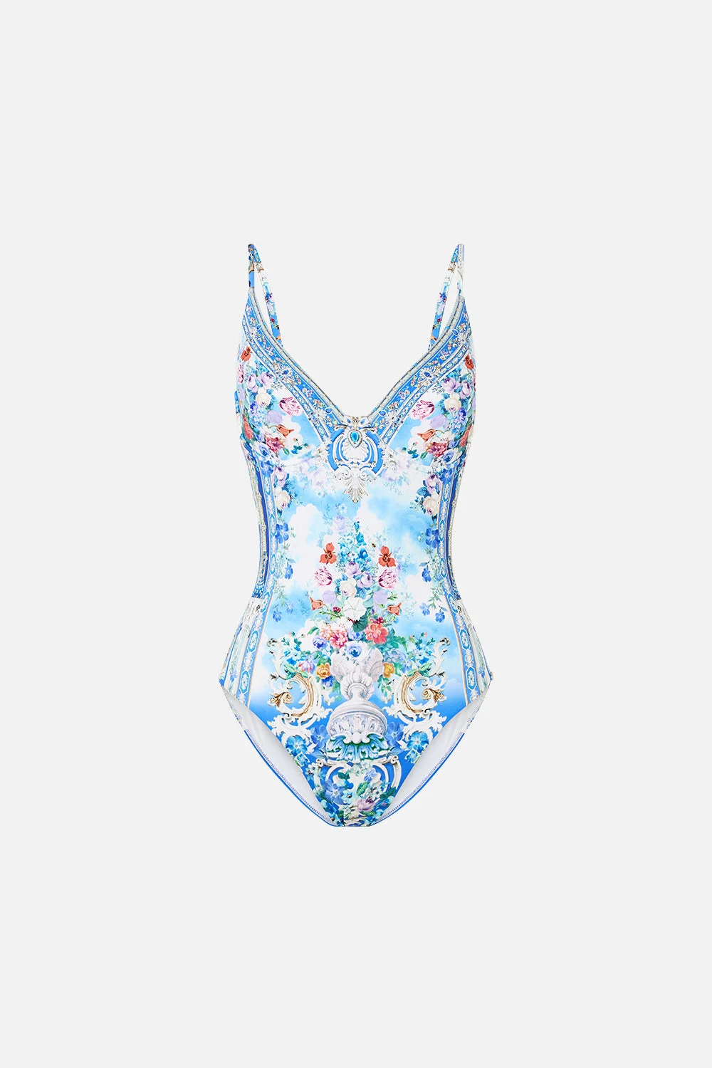 The Ottoman Opulence Soft High Tri Underwire One Piece is a handcrafted silhouette designed by our in house artisans. Reimagined in an exclusive limited edition print, this one piece is made with C to D cups in mind with soft, removable cups, adjustable straps and underwire for personalised support. Its cut with a regular leg line and its finished with intricately placed crystal embellishments. - To Fit C-D Cup - Removable Soft Cups - Underwire Support - Regular Leg Line - Adjustable And Convertible Straps - Crystal Embellishment SKU 00039362-OTTOOPPU-XS Size and Fit Our model wears a CAMILLA O/S and is 5'10 (178cm) tall. Her standard dress size is an AU 10. She has a 32in (83cm) bust, 35in (89.5cm) hips and a 25in (66cm) waist. Fabric and Care MAIN: 82% REGENERATED POLYAMIDE, 18% ELASTANE ECONYL® is regenerated nylon, crafted from waste materials that would otherwise end up polluting our Mother Earth. Its beauty lies in its ability to be recycled, remoulded and ultimately reused time and time again. An infinitely recyclable product that keeps our planet looking beautiful, it opens the door to a circular fashion sphere.