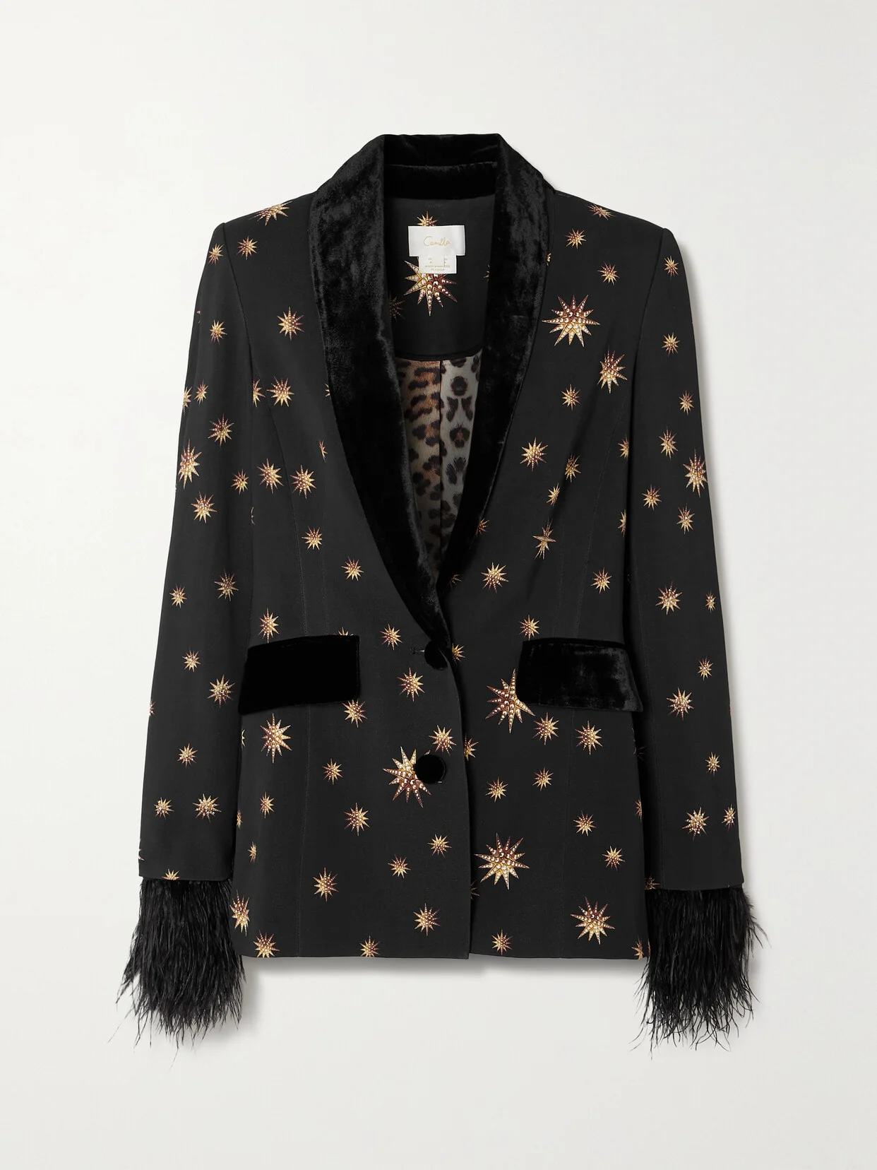 Artful prints form the focus of Camilla's collections, each one designed in-house by artist and founder Camilla Franks. This blazer is woven for a slightly loose fit and has contrasting plush velour and faux-fur trims. The 'Soulstar' print matches the coordinating pants in our edit, if you're feeling bold.