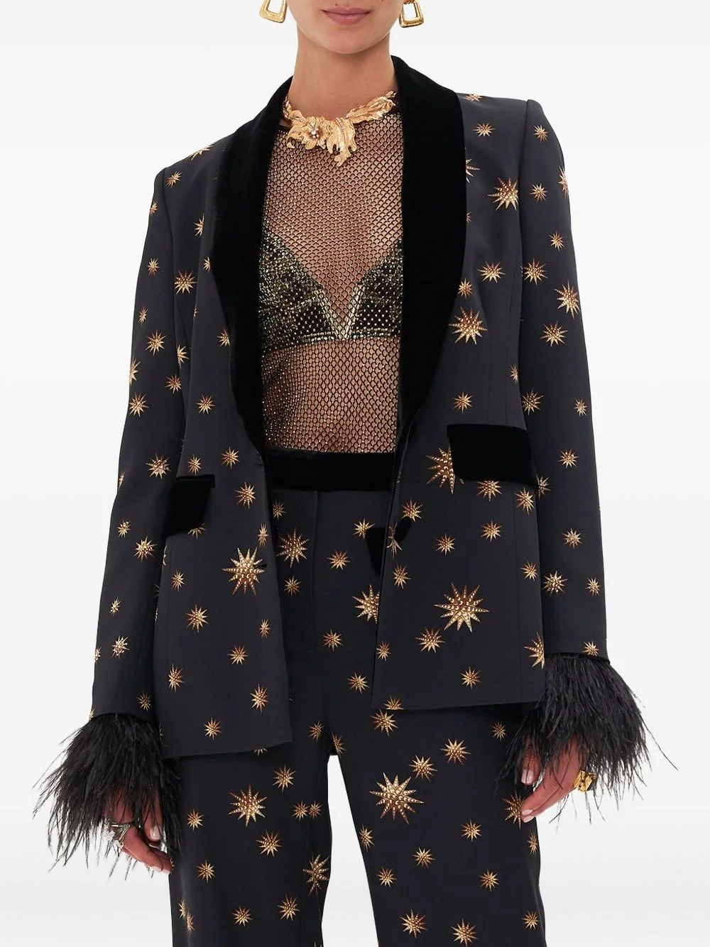 star-print feather-cuff blazer Highlights Imported Composition Viscose 96%, Elastane 4%