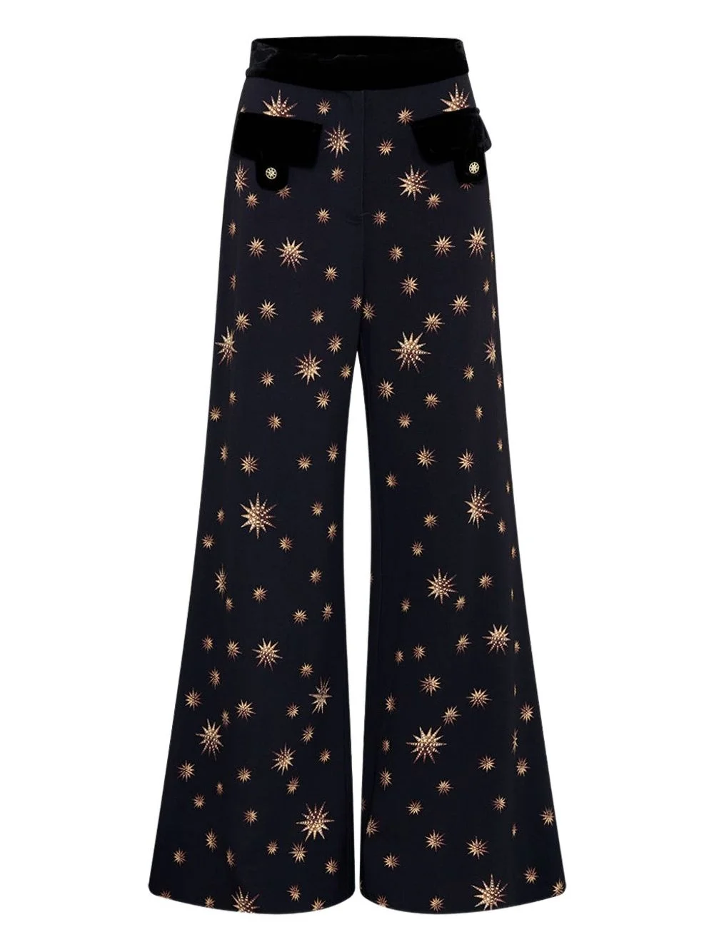 star-print trousers Highlights - Black - Star print - Velvet waistband - Velvet patch pockets - Button embellishment Imported Composition Viscose 96%, Elastane 4% Washing instructions Read Manufacturer Guidelines