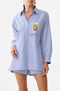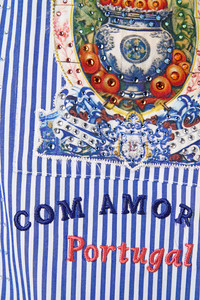 Designed in Australia, The Song Of Saint Anthony Stepped Hem Shirt embarks on a fishing trip through Lisbon’s coastal charm, where hand-drawn creatures embody the spirit of the Saint Anthony Festival—oceanic and celebratory. Lovingly handcrafted, this stepped hem shirt is crafted from premium cotton shirting fabric, featuring a back yoke and collar that elevate its relaxed yet sophisticated design. - Cotton Shirting Fabric - Stepped Hem - Back Yoke - Collar - Crystal Embellishment SKU 00036452-SONGANTH-XXS Fabric and Care 100% COTTON
