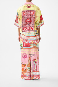 The Collage Kingdom Straight Leg Pant is a handcrafted silhouette designed by our in house artisans. Reimagined in an exclusive limited edition print, our straight leg pants are full length and relaxed fitting. It's finished with an elasticated waistband and inseam pockets for effortless wear. - 100% Silk - Relaxed Fit - Full Length - Elasticated Waistband - Inseam Pockets - Drawstring At Waist With Camilla Tassel Charms - Silk Twill Fabric SKU 00038837-COLLKING-XXS Size and Fit Our model is 5'10 (178cm) tall and wears a size S (AU 10). Bust: 40in (101.6cm) Waist: 26.5in (67cm) Hips: 38in (96.5cm) Designed as a relaxed fit. Take your normal size, or select one size smaller for a neater fit. Fabric and Care 100% SILK Silk twill is renowned for its diagonally-patterned weave and fluid texture. Its high thread count ensures rich density and durability, while its beautiful sheen provides a luscious touch to the skin.