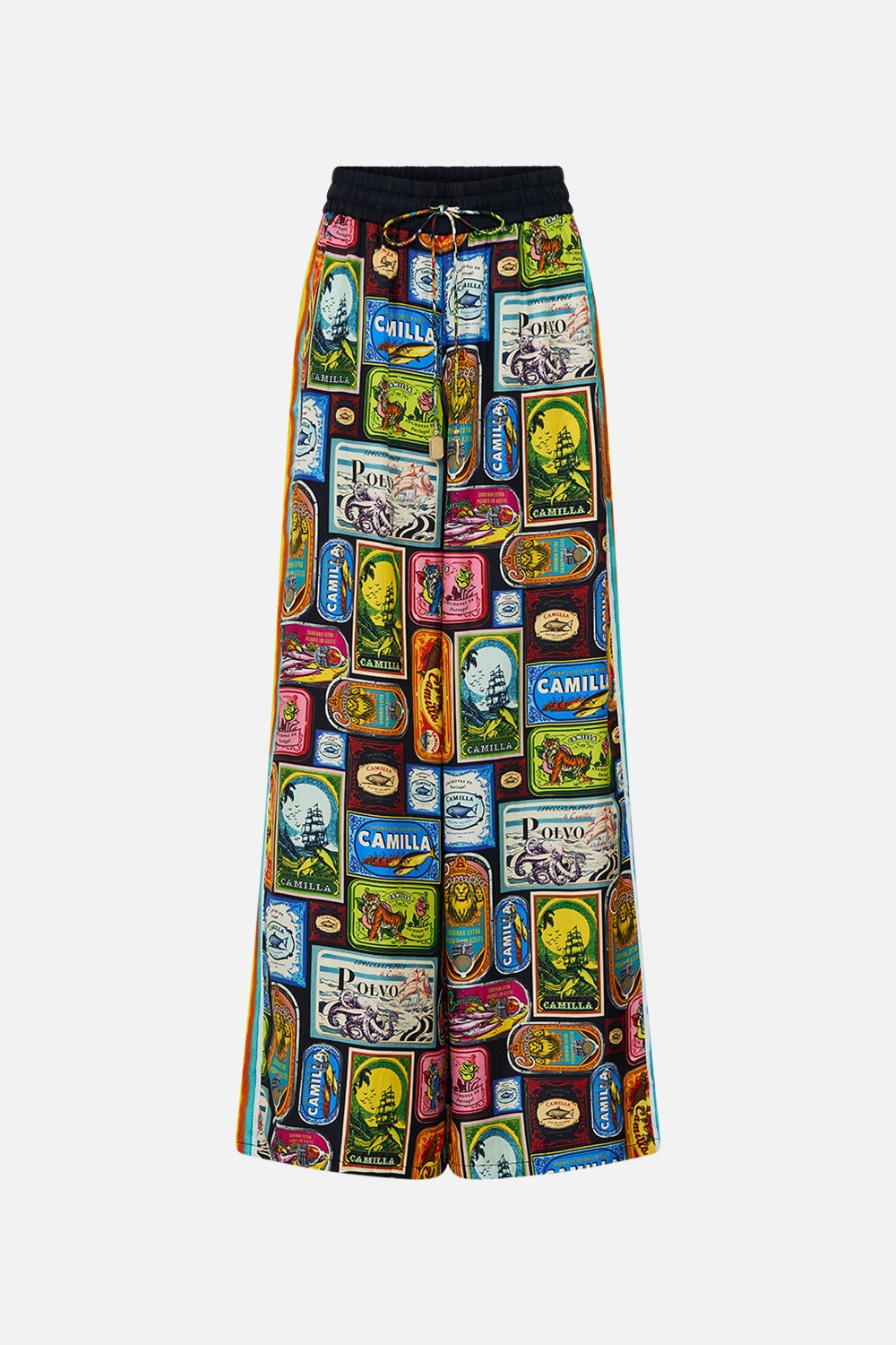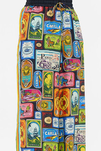 Designed in Australia, The Sal Do Mar Straight Leg Pant invites you to Portugal’s coast, where bold CAMILLA sardine cans celebrate the sea. A vibrant nod to Lisbon’s Saint Anthony Festival of music, laughter, and fresh flavours. Lovingly handcrafted, these luxury silk pants feature an adjustable high waistline with a relaxed wide leg that falls to a full-length hemline. An unparalleled statement piece by CAMILLA. - Relaxed Fit - Full Length - Elasticated Waistband - Inseam Pockets - Tassels SKU 00033786-SALDOMAR-XL Size and Fit Designed as a relaxed fit, take your normal size or select one size smaller for a neater fit Fabric and Care 100% SILK Silk twill is renowned for its diagonally-patterned weave and fluid texture. Its high thread count ensures rich density and durability, while its beautiful sheen provides a luscious touch to the skin.