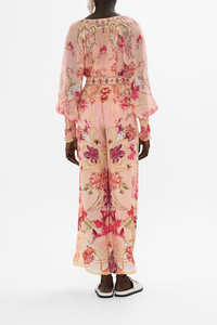 The Blossoms And Brushstrokes Straight Leg Pant wanders through a realm of delicate art nouveau swirls of pink blush tones and rich ruby red florals. This luxury silk pants features an adjustable high waistline with a relaxed wide leg that falls to a full length hemline. Explore more from the Wonderkind collection. - Lovingly Handcrafted - Designed in Australia - CAMILLA Ready-To-Wear - Crystal embellishment - Elastic waistband - Drawstring ties - Wide leg trouser - Side seam pockets - Full length leg - Can be worn as a matching set SKU 00031168-BLOSBRUS-XS Size and Fit Our model wears a CAMILLA S and is 5'10 (178cm) tall. Her standard dress size is an AU 10. She has a 32in (83cm) bust, 35in (89.5cm) hips and a 25in (66cm) waist. CAMILLA Size S = AU10 / UK10 / US6 Our More to Love Model wears a CAMILLA Size 3XL and is 5'9 (182cm) tall. Her standard dress size is a AU 20. She has a 42in (107cm) bust, 35.8in (91cm) waist and 46in (118cm) hips. CAMILLA Size 3XL = AU20 / UK20 / US16 Designed as a relaxed fit, take your normal size or select one size smaller for a neater fit Fabric and Care 100% SILK With its subtly textured surface, silk crepe is our core fabrication made perfect for versatile wear. With its ability to hold alternative ways to wear, this decadent fabric drapes elegantly off the body whilst keeping you cool with its breathable nature.
