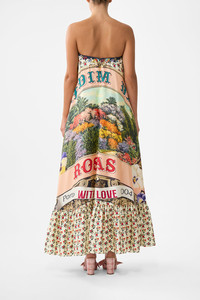 Designed in Australia, the Aromatic Amor Strapless Maxi With Ruffle Hem is inspired by Portugal’s artisanal soul, notes of perfumed soaps and fragrant gardens bloom in layers of delicate charm. Lovingly handcrafted, this maxi dress features a flared silhouette, strapless design with optional straps for versatility. The ruffle hem adds a flare of fun, while the invisible zip ensures a seamless fit. - Flare Silhouette - Strapless Design With Optional Straps - Ruffle Hem - Centre Back Zip Closure - Crystal Embellishment - SKU 00035352-AROMAMOR-XXS Fabric and Care 100% SILK Silk twill is renowned for its diagonally-patterned weave and fluid texture. Its high thread count ensures rich density and durability, while its beautiful sheen provides a luscious touch to the skin.