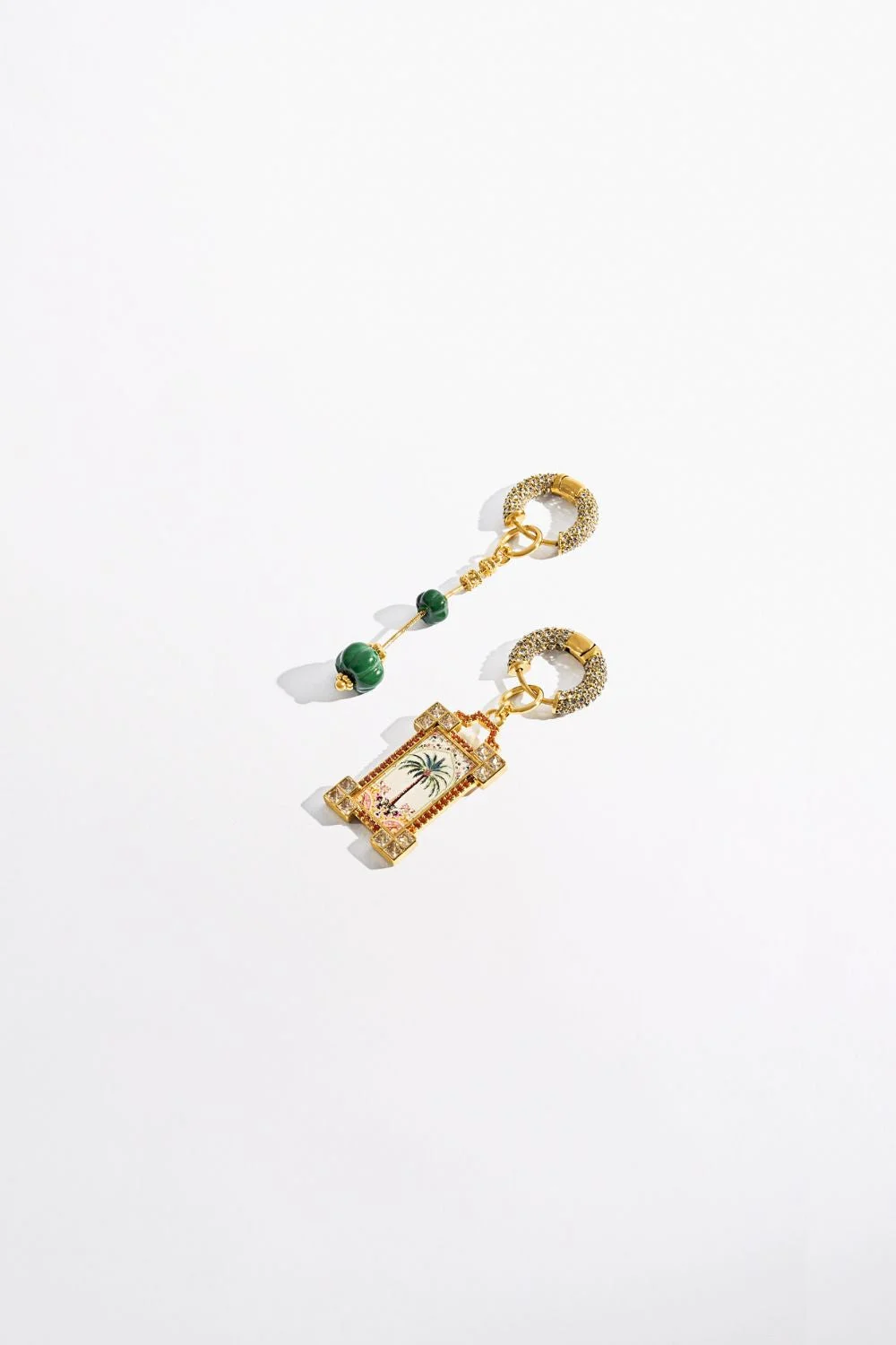 The Gold Sultans, Scribes & Shamans Charm Earrings is a handcrafted accessory designed by our in house artisans. Our asymmetrical drop earrings feature a curated mix of custom charms and is crafted with 18K gold plating. Embellished with intricately applied gemstones, they're a statement piece designed to captivate. - 100% Metal Alloy - 18K Real Gold Plating - Solid Brass Base - Custom Design Inspired By Camilla - Real Cubic Zirconia - Asymmetrical - Drop Earring SKU 00041055-GOLDSUNG-O/S Size and Fit Our model wears a CAMILLA O/S and is 5'10 (178cm) tall. Her standard dress size is an AU 10. She has a 32in (83cm) bust, 35in (89.5cm) hips and a 25in (66cm) waist. Fabric and Care 70% BRASS, 10% CUBIC ZIRCONIA, 20% GLASS