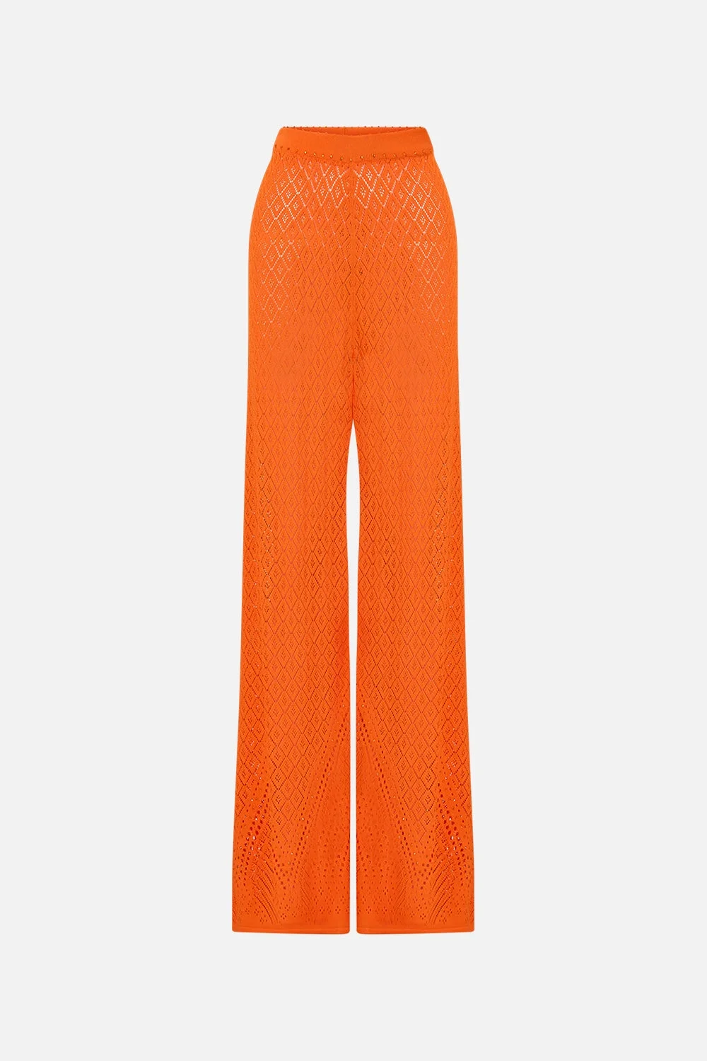 Designed in Australia, the Basked In Baroque Wide Flare Knit Pant celebrates the vivid contrasts of Igreja Matriz De Santa Maria. Painterly prints reflect its dynamic artistry, steeped in timeless energy and colour. Lovingly handcrafted, these wide flare knit pants feature a relaxed fit and high-rise waistband. Pointelle knit and crystal embellishments elevate the style, adding a refined touch to the cozy design. - Relaxed Fit - High Rise Waistband - Pointelle Knit - Crystal Embellishment SKU 00035531-BASKBARO-S Size and Fit Our model wears a CAMILLA S and is 5'10 (178cm) tall. Her standard dress size is an AU 10. She has a 32in (83cm) bust, 35in (89.5cm) hips and a 25in (66cm) waist. Camilla S = AU10 / UK10 / US6 Fabric and Care 80% RECYCLED VISCOSE 20% NYLON