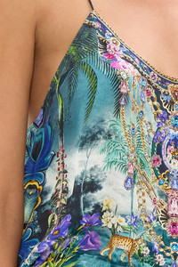 Designed in Australia, the Basked In Baroque T Back Shoestring Top dances in pastel hues and vibrant painterly graphics, inspired by the electric beauty of Igreja Matriz De Santa Maria and its radiant frescoes. Lovingly handcrafted, this luxury CAMILLA silk top features delicate shoestring straps that flow from a front scoop neckline into a racerback. Relaxed A-line fit throughout the body that’s falls to a hip level perfect for tucking into high waisted styles or worn out for effortless flow. - Crystal Embellishment - Shoestring Straps - Round Neckline - Flared Hem - SKU 00035648-BASKBARO-XXS Size and Fit Designed as a relaxed fit—take your normal size, or select one size smaller for a neater fit. Fabric and Care 100% SILK Silk satin embodies a sumptuously smooth finish that offers a rich buttery touch to the skin. As a result of the satin weaving technique, it masterfully creates a fuller bounce to the body and drape details.