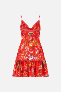 The OlE OlE Tie Front Short Dress With Hem Ruffle is a handcrafted silhouette designed by our in-house artisans. Created in an exclusive limited edition print, this silk dress features an adjustable tie front that flows into a flared skirt. Romantic ruffles finish the mini hemline as crystal embellishmens adorn the neckline, bringing a scintillating touch to the dEcolletage. - 100% Silk - Short Length - Tie Front Bust - Front Button Closure - Gathered Hem Ruffle - Crystal Embellishment SKU 00040412-OLEOLEEE-XXS Size and Fit Our model is 5'10 (178cm) tall and wears a size S (AU 10). Bust: 40in (101.6cm) Waist: 26.5in (67cm) Hips: 38in (96.5cm) Fabric and Care 100% SILK Silk twill is renowned for its diagonally-patterned weave and fluid texture. Its high thread count ensures rich density and durability, while its beautiful sheen provides a luscious touch to the skin.