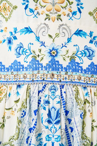 The My Homespun Heart Tie Shoulder Dress is a handcrafted silhouette designed by our in house artisans. Reimagined in an exclusive limited edition print, this maxi dress is framed by a V neckline that is adorned with adjustable shoulder ties. The fitted bodice meets a curved yoke panelled skirt and gathers at the dropped waist into a full length hemline. It's finished with an Invisible zip alongside of the body for a comfortable, flattering fit. - Shoulder Ties - Structured Waistband - Shaped Skirt Yoke - Maxi Length - Crystal Embellishment SKU 00041006-HOMEHEAR-XXS Size and Fit Our model is 5'10 (178cm) tall and wears a size S (AU 10). Bust: 40in (101.6cm) Waist: 26.5in (67cm) Hips: 38in (96.5cm) Designed and fitted true to size, take your normal size. Fabric and Care 80% LINEN, 20% SILK Designed and fitted true to size, take your normal size.