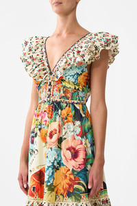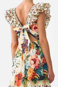Designed in Australia, the Aromatic Amor Tiered Dress With Neck Frill is inspired by Portugal’s artisanal soul, notes of perfumed soaps and fragrant gardens bloom in layers of delicate charm. Lovingly handcrafted, this sumptuous maxi dress homes a plunging V neckline with fitted bust. The fitted bodice flows into a flared skirt of cascading tiered panels that dance at the ankles. - Fitted Waist With Adjustable Tie Back - Full Length - Deep V Button Neck With Modesty Clip - Double Layer Neck Frill - SKU 00037812-AROMAMOR-XXS Size and Fit Our model wears a CAMILLA S and is 5'10 (178cm) tall. Her standard dress size is an AU 10. She has a 32in (83cm) bust, 35in (89.5cm) hips and a 25in (66cm) waist. Camilla S = AU10 / UK10 / US6 Designed and fitted true to size, take your normal size. Fabric and Care 100% ORGANIC COTTON Organic cotton poplin is sumptuously smooth with a crisp, refined weave. This lightweight silken fabric drapes beautifully and is ideal for sleek contours and tailored, defined styles.